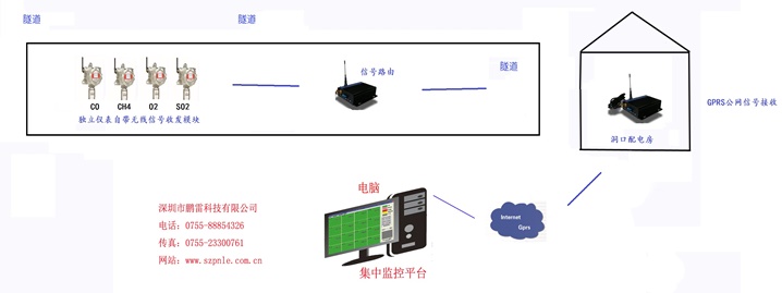 ???? 本項目情況為隧道有害氣體濃度監控,主要監測氣體種類有,二氧化硫,甲烷,一氧化碳,氧氣,氨氣五種氣體的氣體監控項目,隨著隧道深度的推進,這氣體探測儀表的位置也將隨之移動,從淺到深的推進。因此儀表供電需要采用畜電池供電,每個儀表個獨立無線傳輸,才能做到靈活自由的布置監控點。不同隧道長度和彎道的不同情況,因此建議配置1臺,信號中繼器,放置在隧道內的合適位置,提供信號中轉的交換。